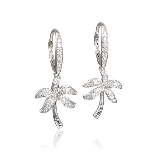 Material:SS 925 Weight:5.2g 925 Sterling Silver Palm Tree Earrings, Set with 62 CZ totaling 1.3 ct.