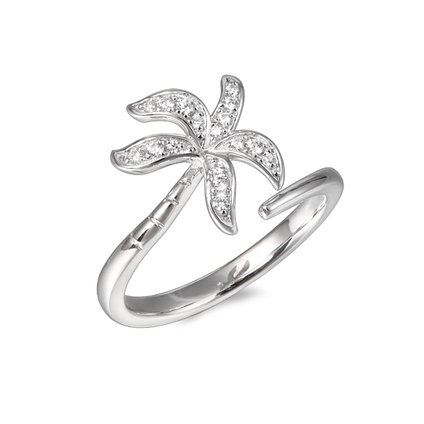 925 Sterling Silver Palm Tree Ring, Set with 17 CZ totaling 0.23 ct.