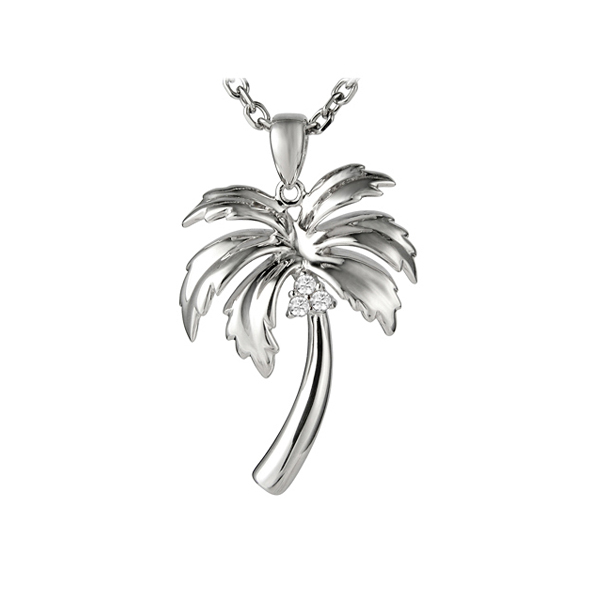 Material:SS 925 Width:10 x 15mm Weight:0.9g 925 Sterling Silver Palm Tree Pendant, Dimensions 10 x 15 mm, Set with 3 CZ totaling 0.08 ct.