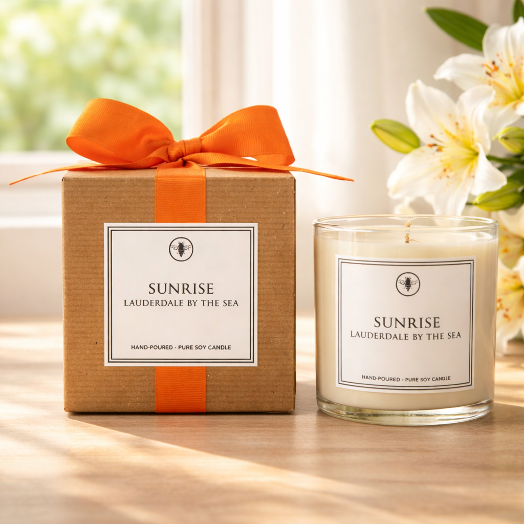 Our custom curated candles are hand-poured in the USA using high-quality 100% pure uncolored soy, fragrance oils, and a cotton wick. Comes packaged in a recycled kraft box with ribbon perfectly ready for gifting! 11 oz candle with 60+ hour burn time.